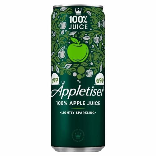 • 24 x Appletiser Cans 250ml Appletiser is made with gently sparkling 100% apple juice. 150ml officially counts as one of your 5-a-day. Appletiser makes any meal more Appletising. Original Quality since 1966 100% Apple Juice Gently Sparkling No preservatives 150ml represents 1 of your 5 a day portions This product is GMO free This product is gluten free This product is allergen free This product is suitable for vegetarians/vegans Ingredients Carbonated Apple Juice from Concentrate (100%)