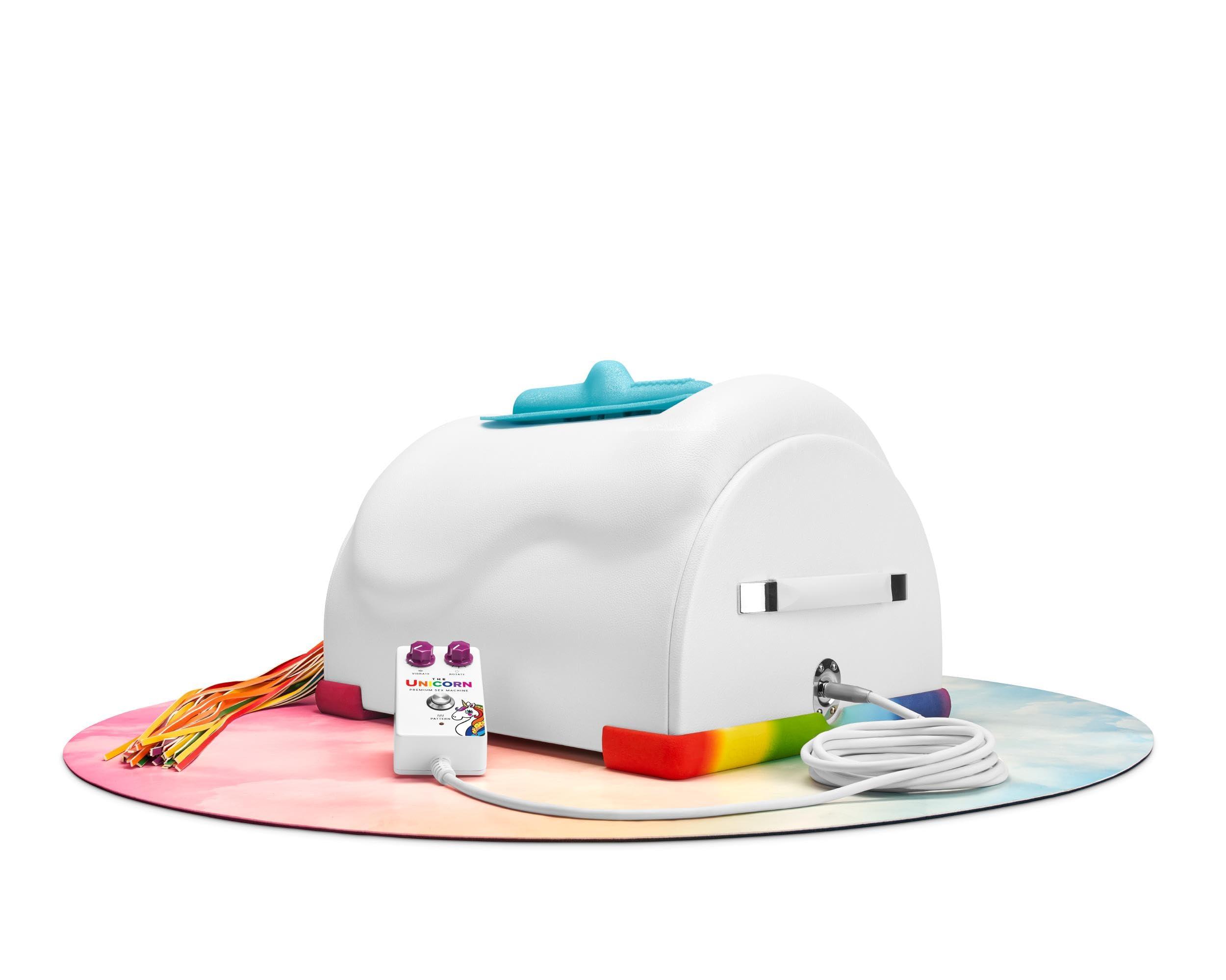 - Featuring a corded LED remote, detachable rainbow tail flogger, and an ethereal skies floor mat to help contain all the powerful vibrations from this supercharged sex machine. Plus, with 400 lbs of weight capacity, The Unicorn is your perfect adventure partner for solo or couple's rides.