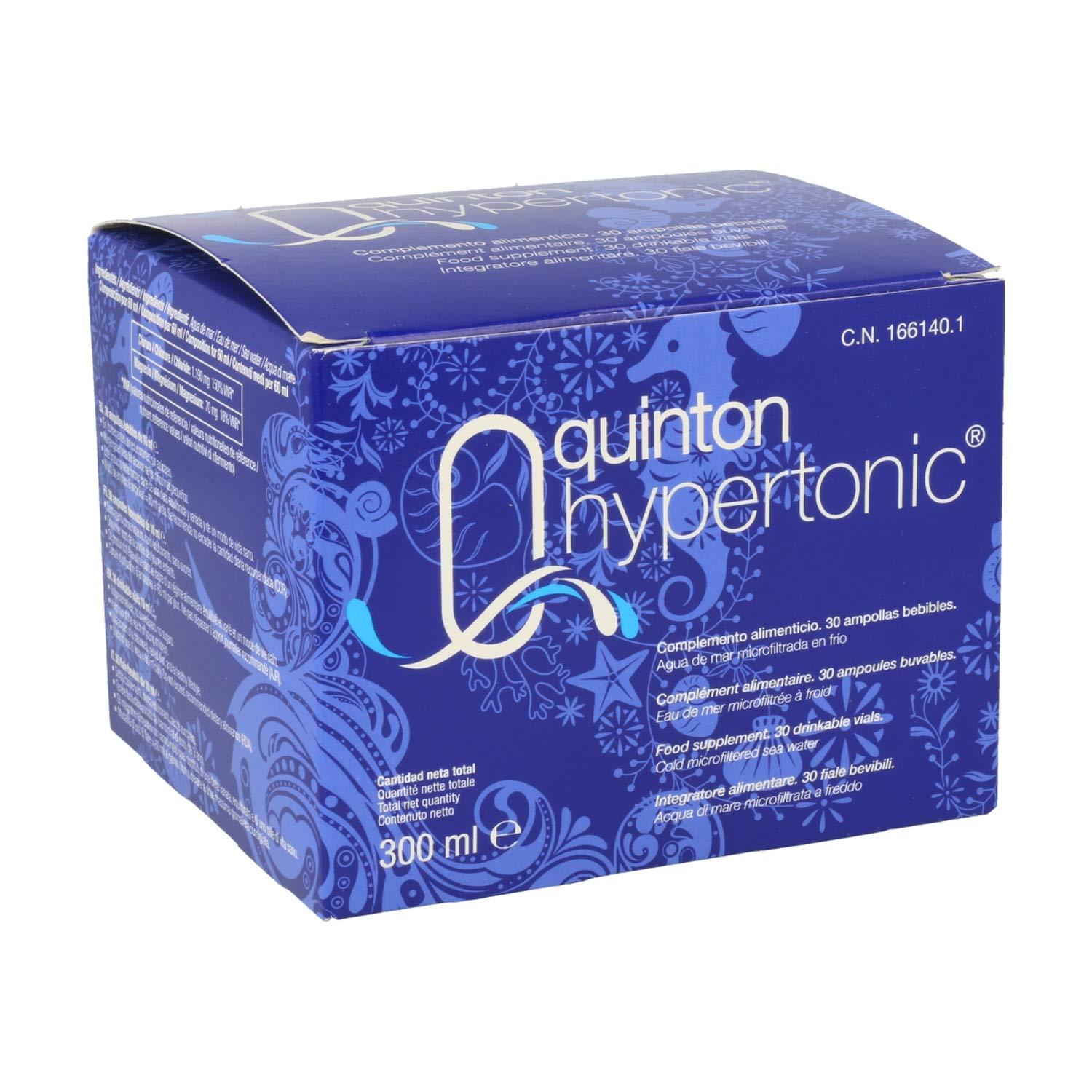 Eau de Quinton - Quinton Hypertonic, 100% Natural Hypertonic Seawater, With Magnesium and Micronutrients, 30 Drinkable Ampoules of 10 ml