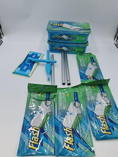 Flash Speedmop is the quick, easy and hygienic way to keep on top of daily floor dirt. The handy Speedmop stick assembles in seconds, then keeps out of your way with its slender profile; which also makes it perfect for cleaning hard to reach places without getting down on your knees like under the sofa, around the bin or down the side of the washing machine. The Speedmop Giga Pack includes the Speedmop and 60 Wet Cloths, which are safe across most hard surfaces, such as wood, tile and lino. Traps & locks dirt and grime The Flash Speedmops Trap + Lock technology dissolves dirt and grime, trapping them in its core and locking them away for good. Built-in scrubby strip Flash Speedmop textured wet cloths feature a scrubbing strip and are 2x thicker & wetter than floor wipes. Perfect for removing tough, stuck-on grime without any additional sprays or liquids. Safe on all floors Versatile enough to use on ceramic, vinyl, wood, and other hard floor surfaces. 360-degree clean The Flash Speedmops swivel head twists and turns so you can get into every nook and cranny. It reaches those tough-to-reach spots, so you dont have to.