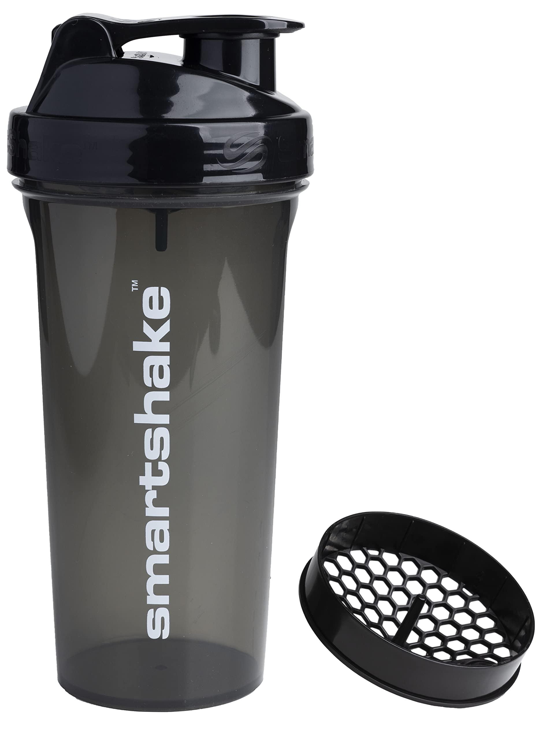 - SUPER LIGHTWEIGHT to hold, this protein shaker bottle weighs only 150 grams. The Smartshake Lite comes with our signature shaker net and *************************************************************-on leak-proof lid, packed into a no-frills shaker bottle